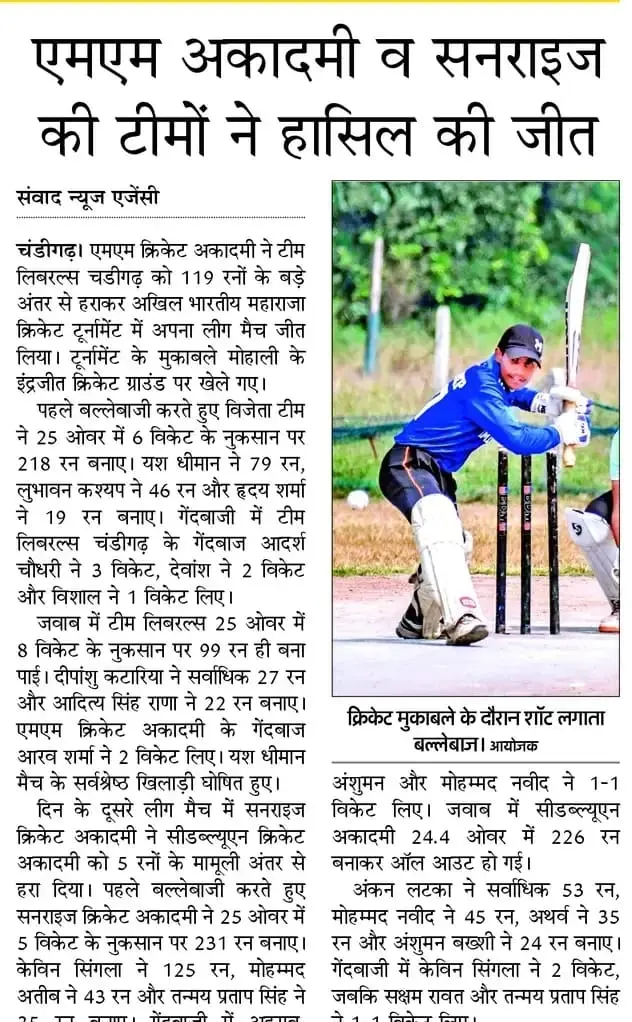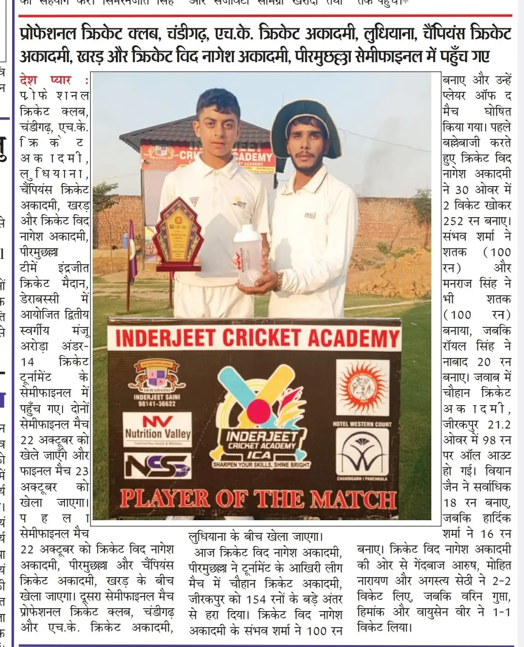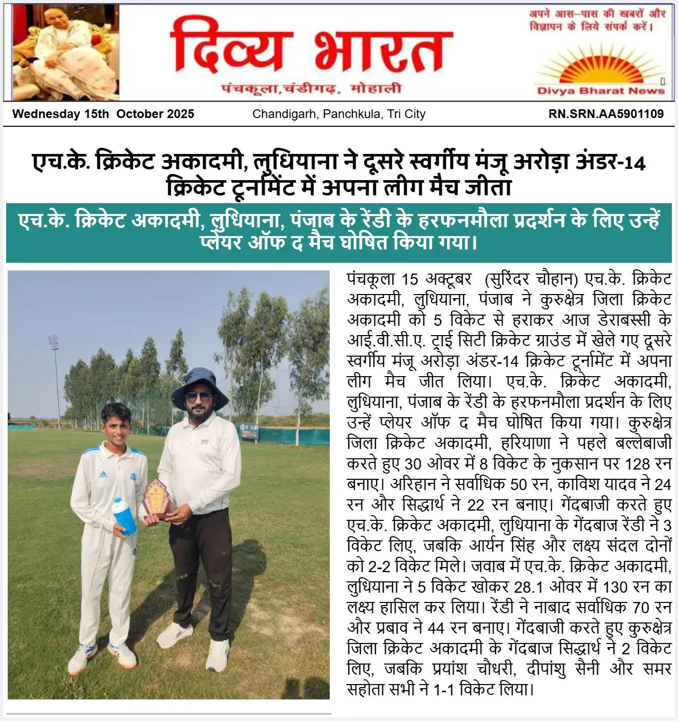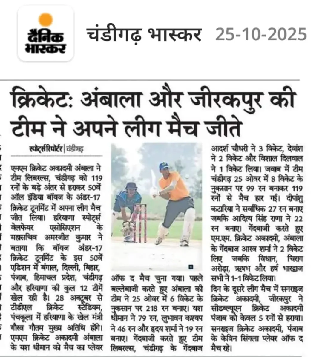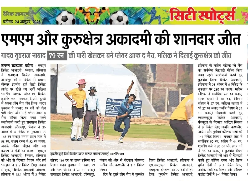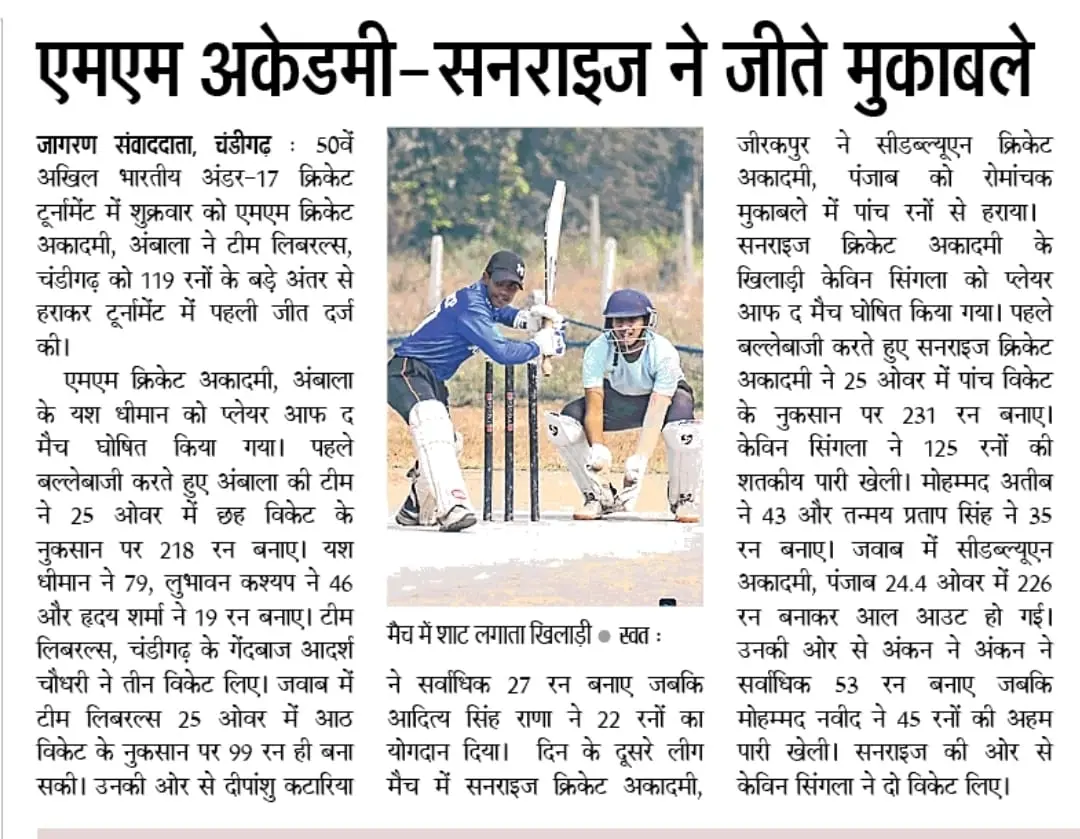 हरियाणा स्पोर्ट्स वेलफेयर एसोसिएशन (पंजीकृत) के महासचिव अमरजीत कुमार ,सुरिंदर गोयल के अनुसार, बंगाल, दिल्ली, बिहार, विदर्भ, पंजाब, हिमाचल प्रदेश, चंडीगढ़ और हरियाणा से कुल 12 टीमों ने आगामी 50वें अखिल भारतीय बालक अंडर-17 क्रिकेट टूर्नामेंट में अपनी भागीदारी की पुष्टि की है। महाराजा अग्रसेन ट्रॉफी के लिए यह टूर्नामेंट 23 अक्टूबर से 31 अक्टूबर तक टीडीएल क्रिकेट स्टेडियम, पंचकूला, हरियाणा और इंडस वैली क्रिकेट ग्राउंड तथा इंद्रजीत क्रिकेट ग्राउंड, डेराबस्सी में खेला जाएगा। फाइनल मैच और भव्य पुरस्कार वितरण समारोह 31 अक्टूबर को टीडीएल क्रिकेट स्टेडियम, पंचकूला में खेला जाएगा।