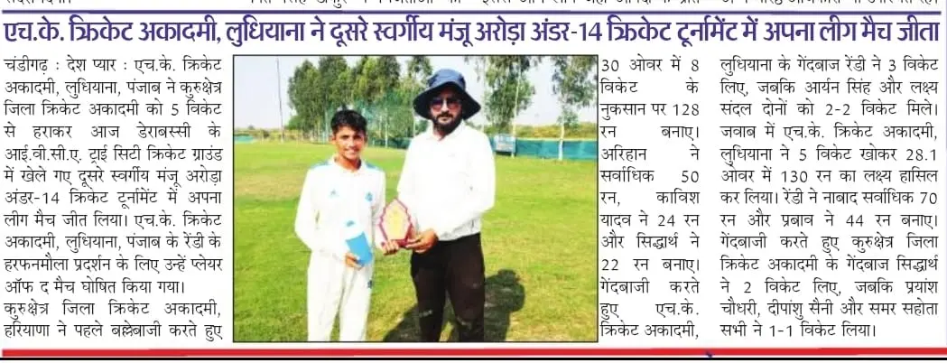हरियाणा के माननीय मुख्यमंत्री श्री नायब सिंह सैनी ने हरियाणा स्पोर्ट्स वेलफेयर एसोसिएशन (पंजीकृत) के सभी सदस्यों को शुभकामनाएं और आशीर्वाद दीया और कहा है कि मैं वास्तव में हरियाणा स्पोर्ट्स वेलफेयर एसोसिएशन (पंजीकृत) के सदस्यों की सराहना करता हूं और उन्हें बधाई देता हूं, जो जमीनी स्तर पर क्रिकेट को बढ़ावा देने के लिए कड़ी मेहनत कर रहे हैं और शहर के ग्रामीण/पिछड़े क्षेत्रों के उभरते/जूनियर क्रिकेटरों को एक मंच प्रदान करने में लगे हुए हैं। मैं आयोजकों को बधाई और शुभकामनाएं देता हूं क्योंकि वे पिछले 20 वर्षों से बड़े पैमाने पर जिला, राज्य और राष्ट्रीय स्तर और ट्राई सिटी में लड़कों और लड़कियों के क्रिकेट को नियमित रूप से बढ़ावा दे रहे हैं।